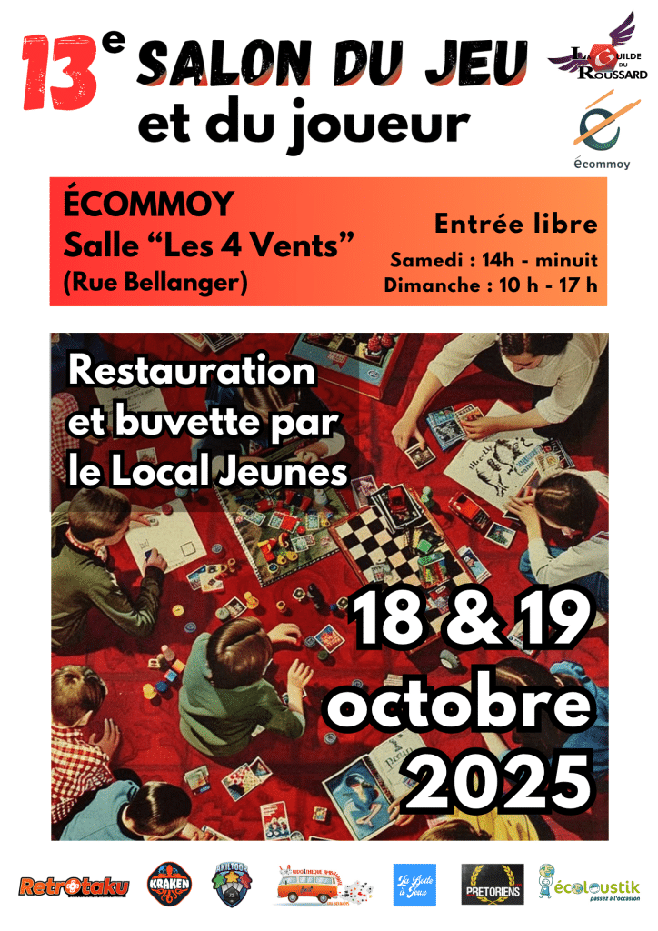 Comme chaque année depuis 15 ans, Écommoy fêtera les jeux de plateaux les 18 et 19 octobre 2025. Ce sera l’occasion de venir jouer en famille, essayer de nouveaux jeux ou redécouvrir des jeux plus classiques. Grâce à nos partenaires, il y en aura pour tous les goûts !